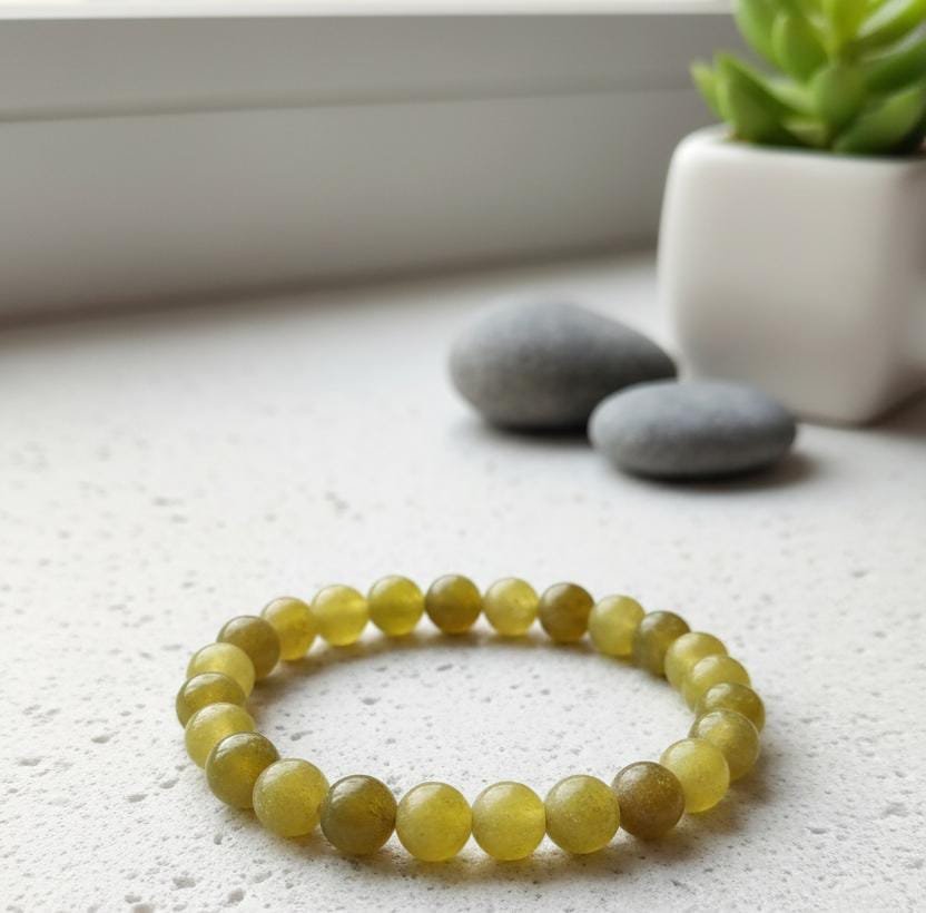 Embrace natural vitality and positive energy with this stunning beaded stretch bracelet. Featuring polished, smooth round beads in a vibrant yellow-green hue, this bracelet captures the fresh, lively colors of nature. It’s the perfect accessory for both everyday wear and layering with other pieces.