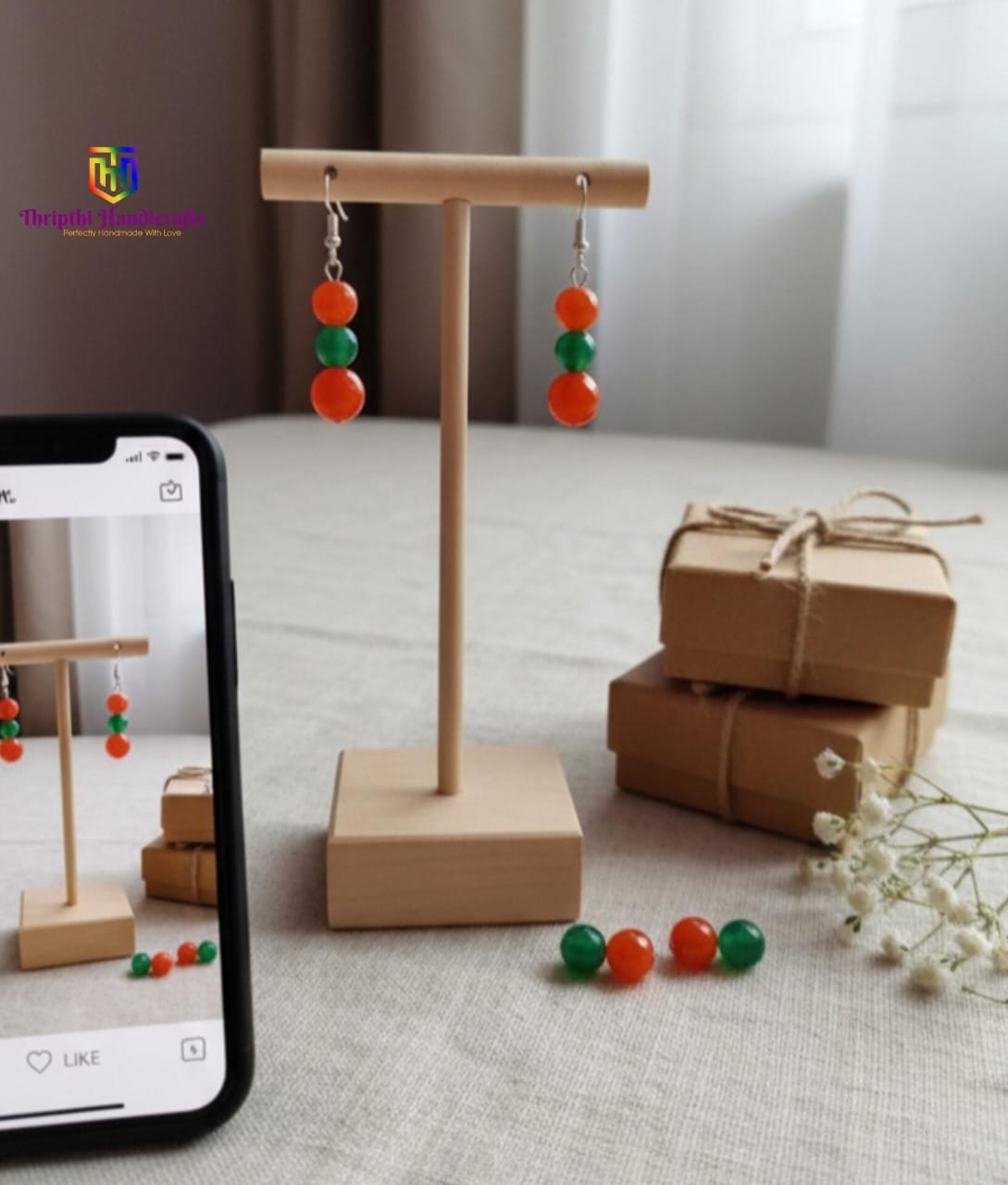 Add a splash of joyous color to your everyday with our Sunset & Forest Dangle Earrings from Thripthi Handicrafts. These delightful earrings are designed to capture the vibrant essence of nature, bringing warmth and freshness to any ensemble.