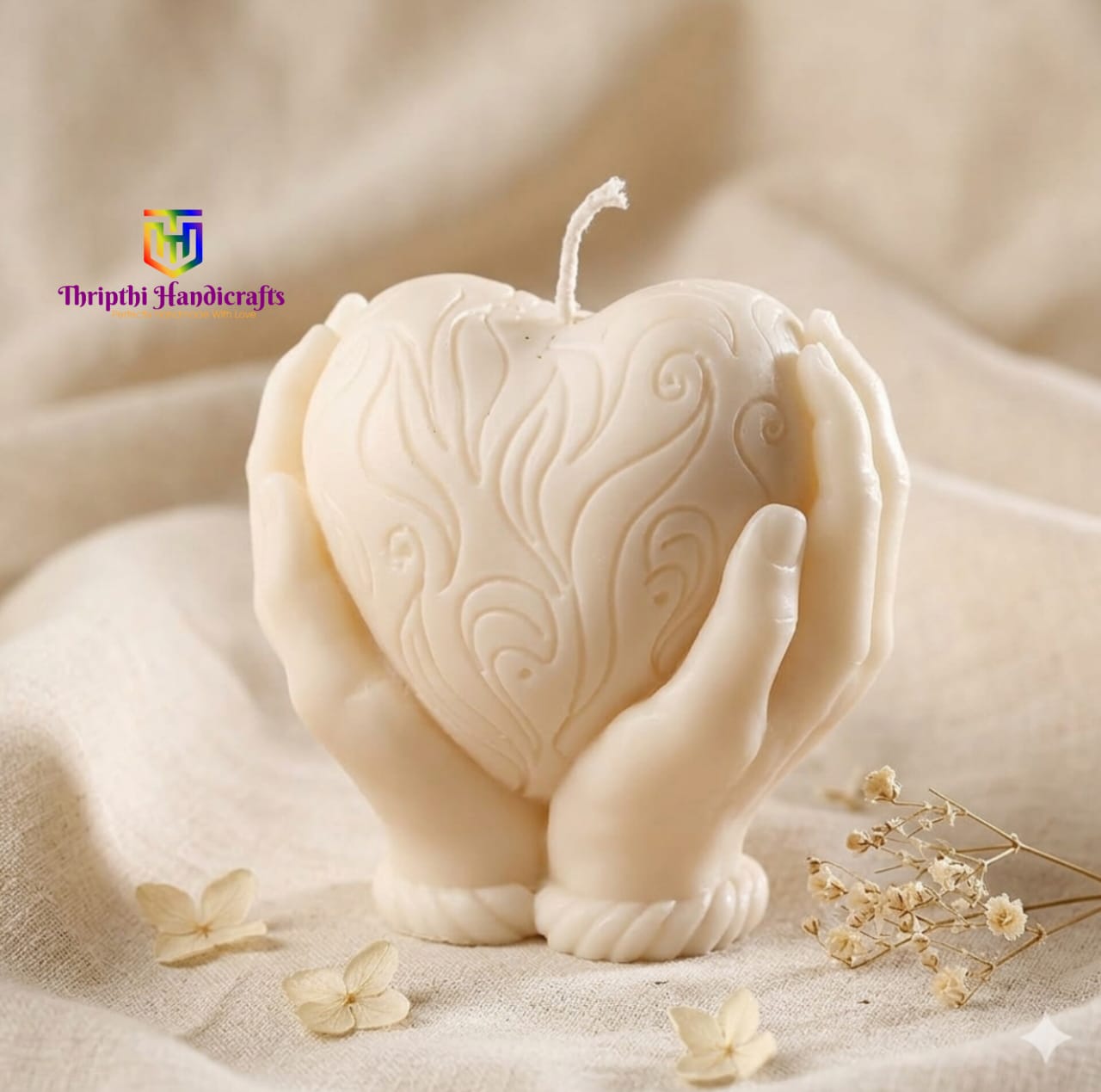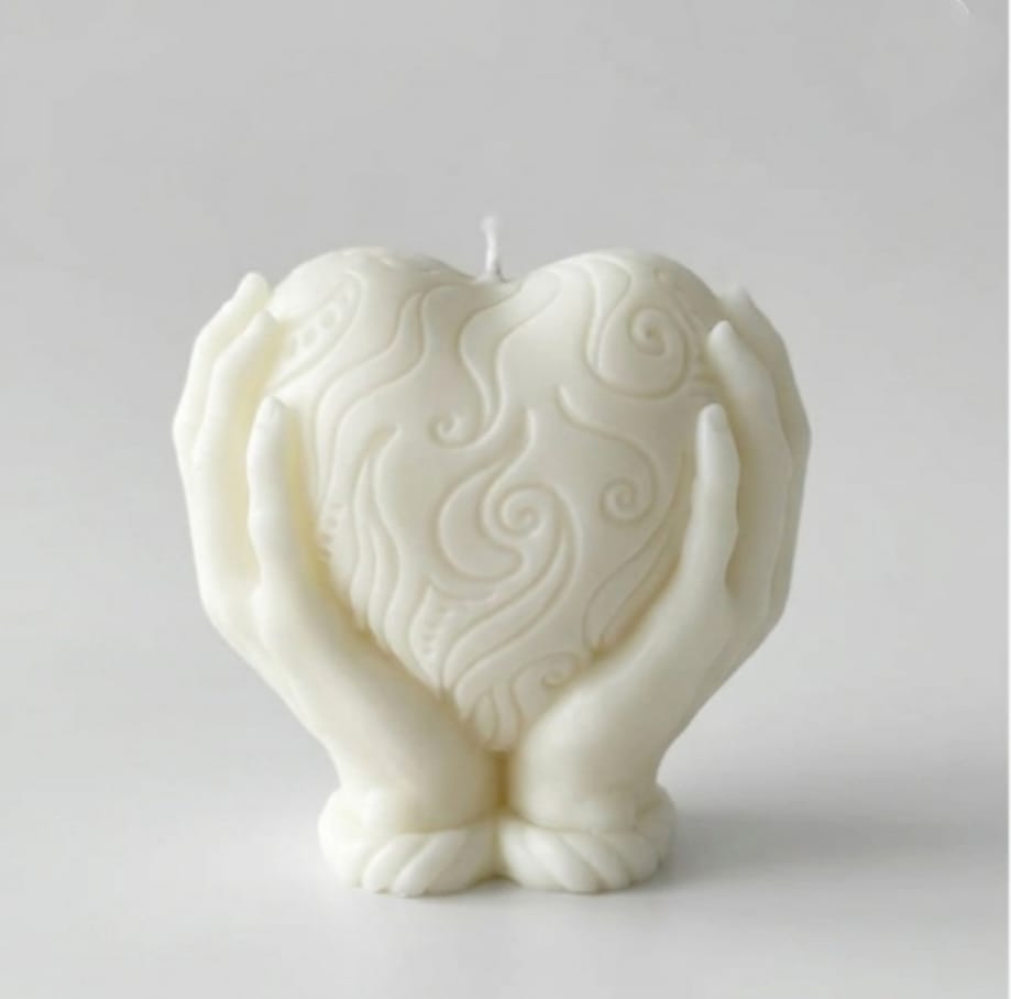Artistry meets emotion in this stunning, hand-poured sculptural candle. Featuring a beautifully textured heart cradled by two delicate hands, this piece symbolizes protection, love, and the warmth of human connection.