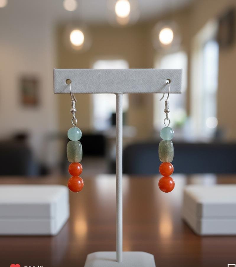 The beads are suspended from a delicate silver-tone French wire ear hook, ensuring comfort and easy wear. The contrasting yet harmonious colors make these earrings a versatile accessory that complements a wide range of styles, from bohemian chic to modern minimalist.